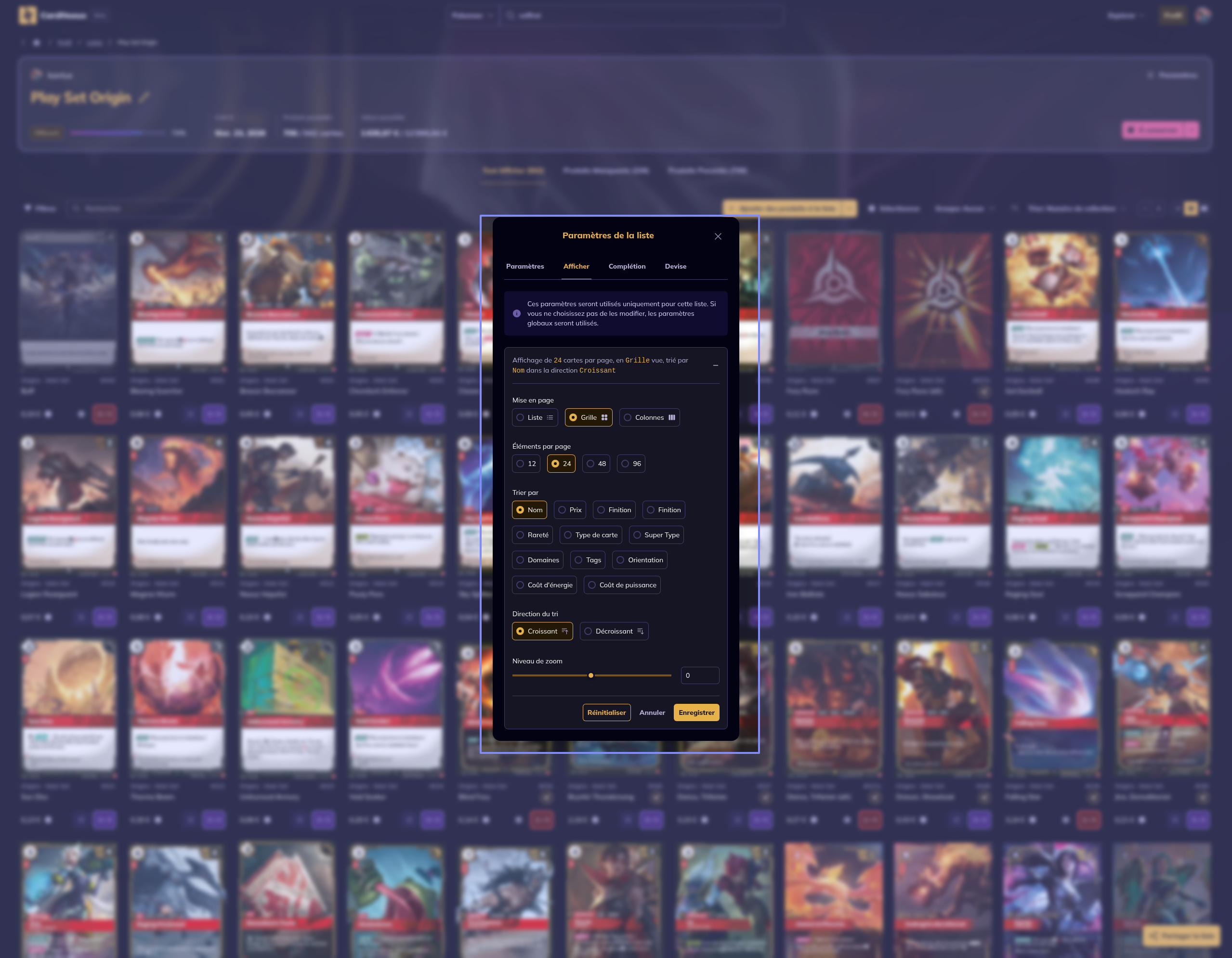 Créer une liste Play set Riftbound Set Origin