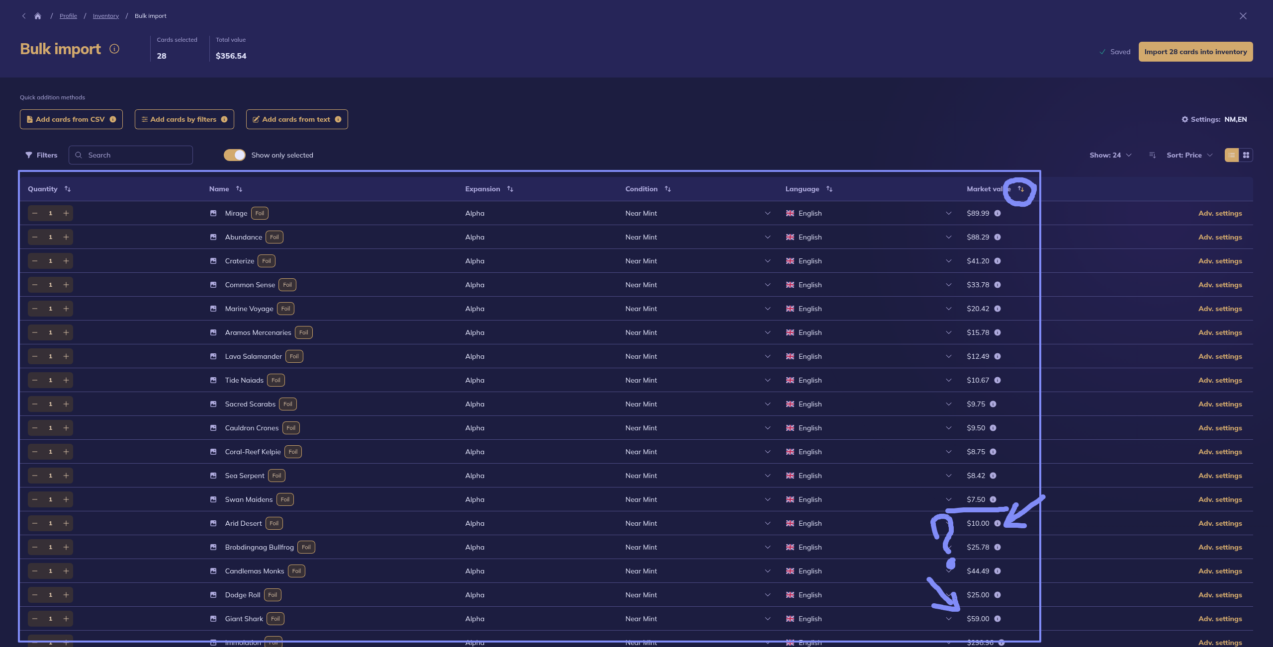 Also sorting cards where there is a mix of market and TCG low make sorting by price broken, TCG low are sorted in inverted value and independant of TCG market value.