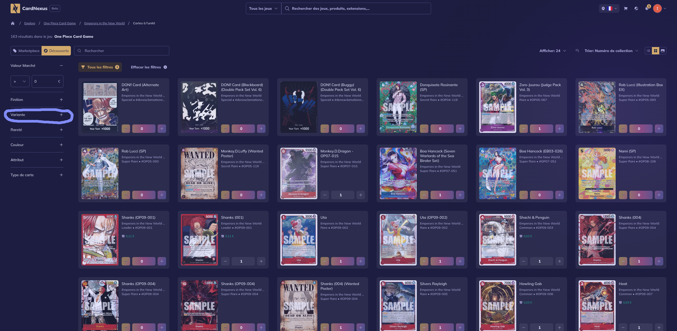 De plus sur OP il vaut mieux intégrer vos variantes dans votre catégorie “Rareté”. La communauté OP se réfère ainsi.