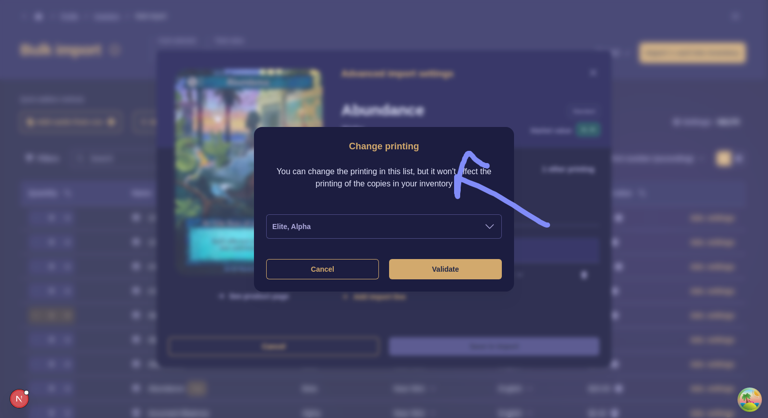 Second it does not change the printing in the import like if i open a dialog from abundance alpha and then switch to beta and validate, I have now 1 abundance alpha in my import