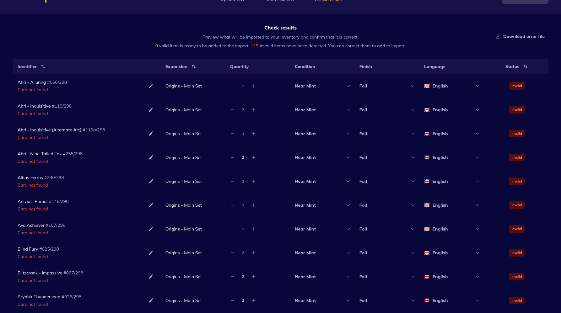 I have had a couple issues trying to import via CSV from Collectr.