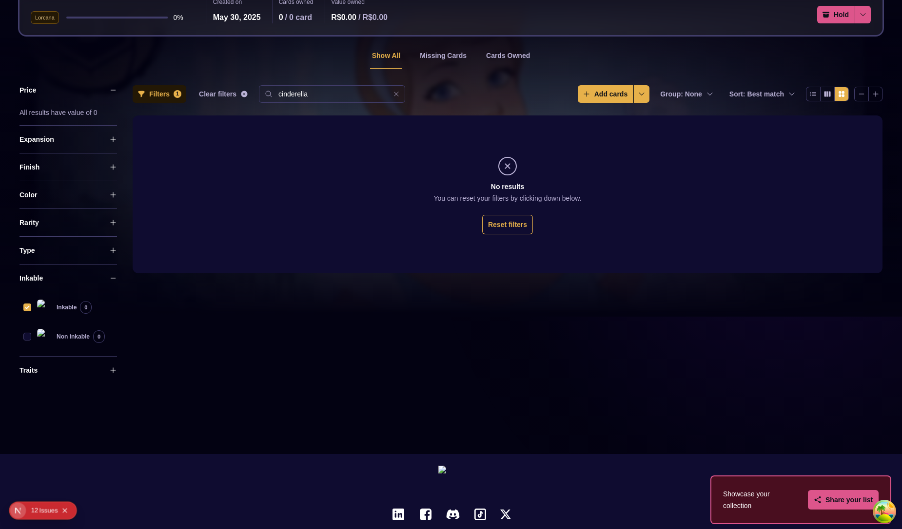 Inkable field in lorcana list is not working, leading to an empty list always.