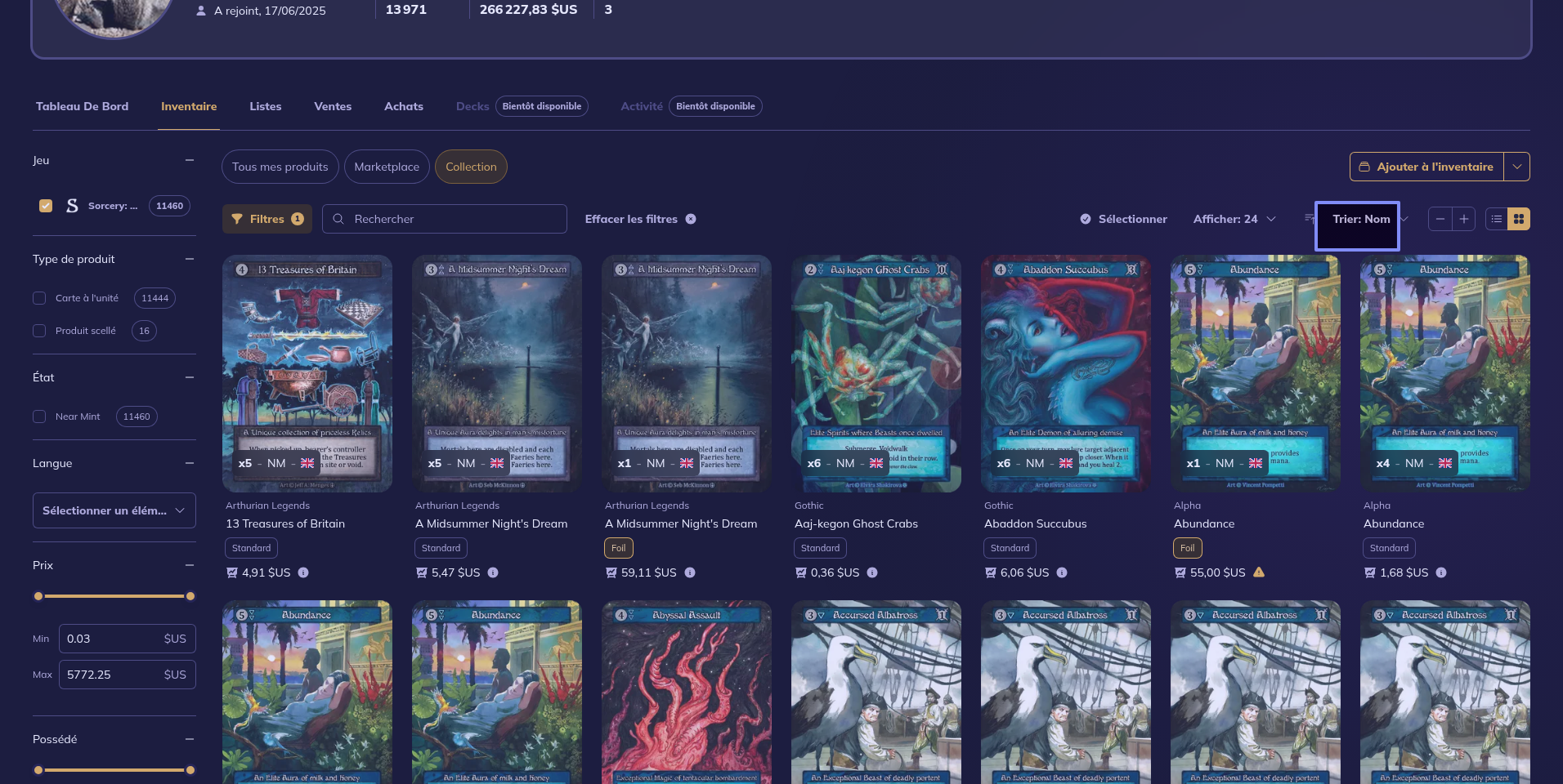 Sur Sorcery, le filtre par élément ne fonctionne pas.