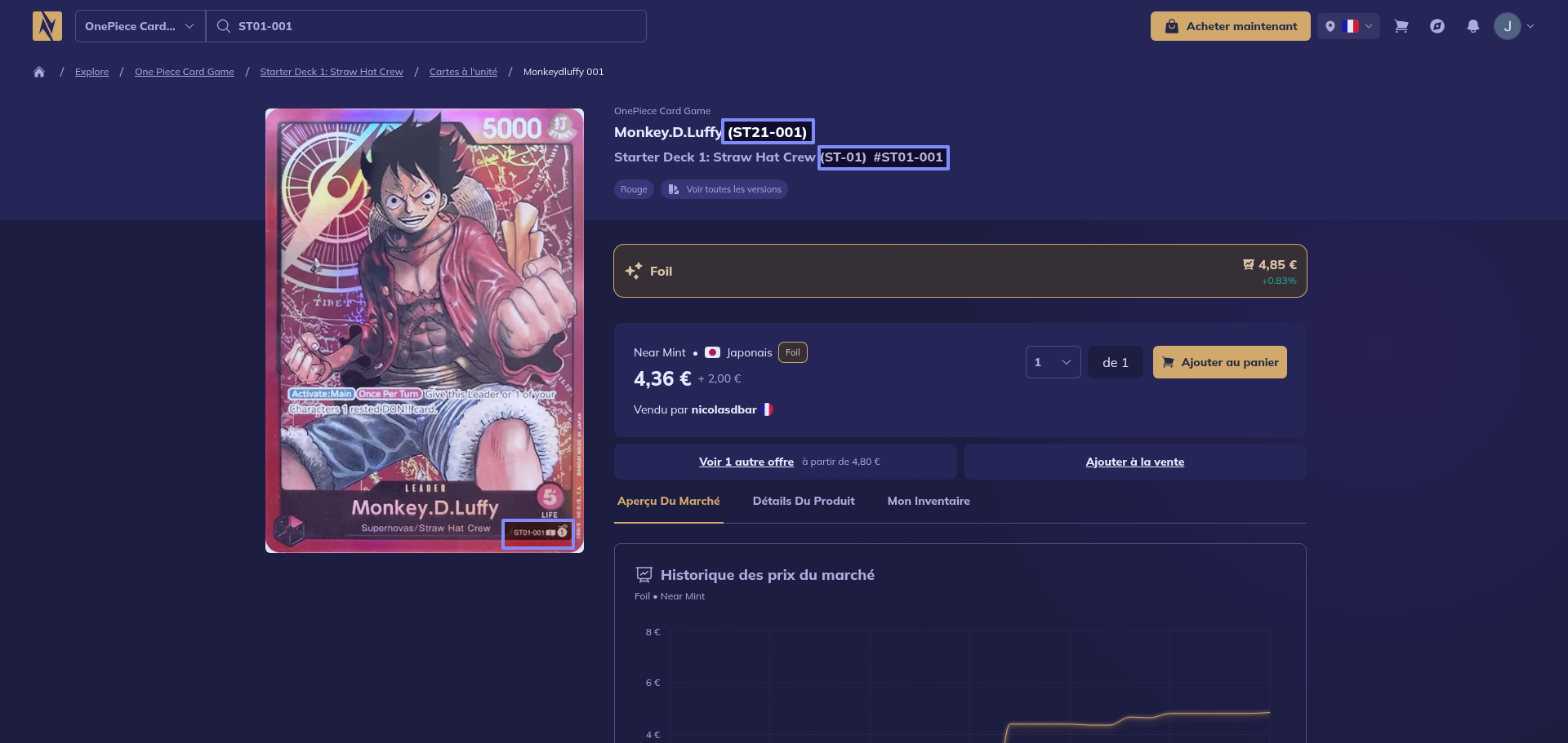 En recherchant la ST01-001 j’ai bien la bonne image mais pas le bon nom.