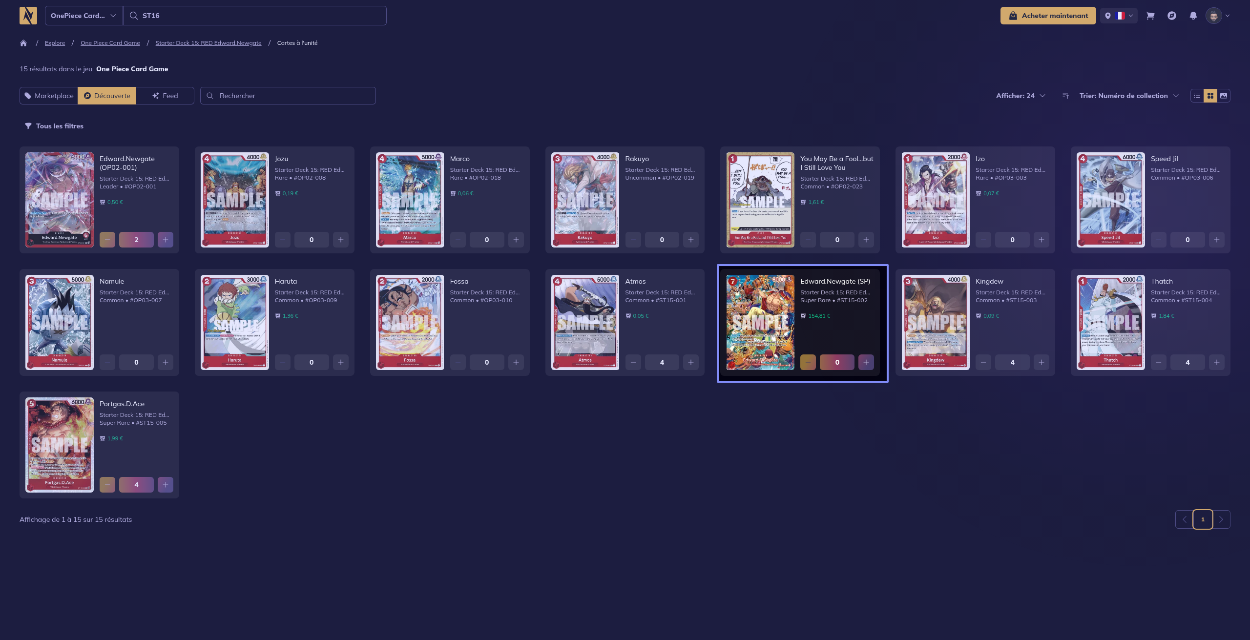La carte et l’image ne corresponde pas il s’agit ici de la version normal obtenue dans le ST15 et non de la SP