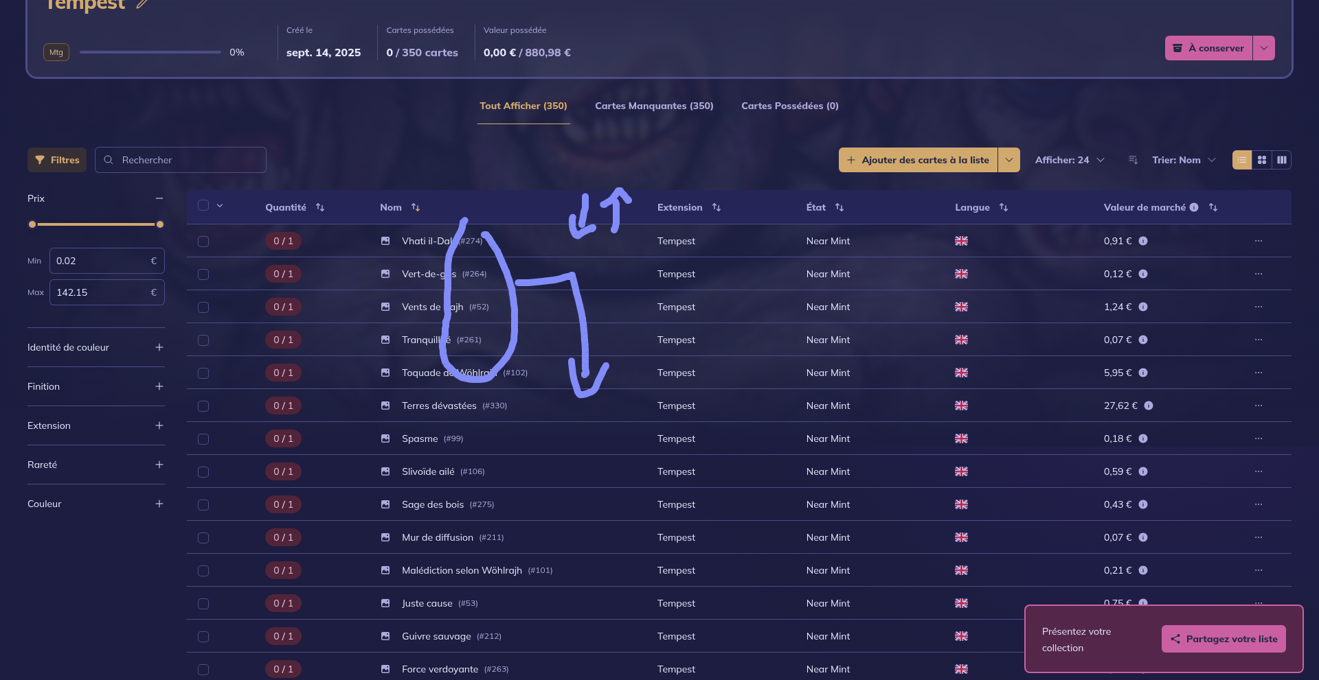Cependant pour répertorier ce que l’on possède et ce qui nous manque, généralement on se base sur le numéro de collection (indiqué après le nom de la carte).