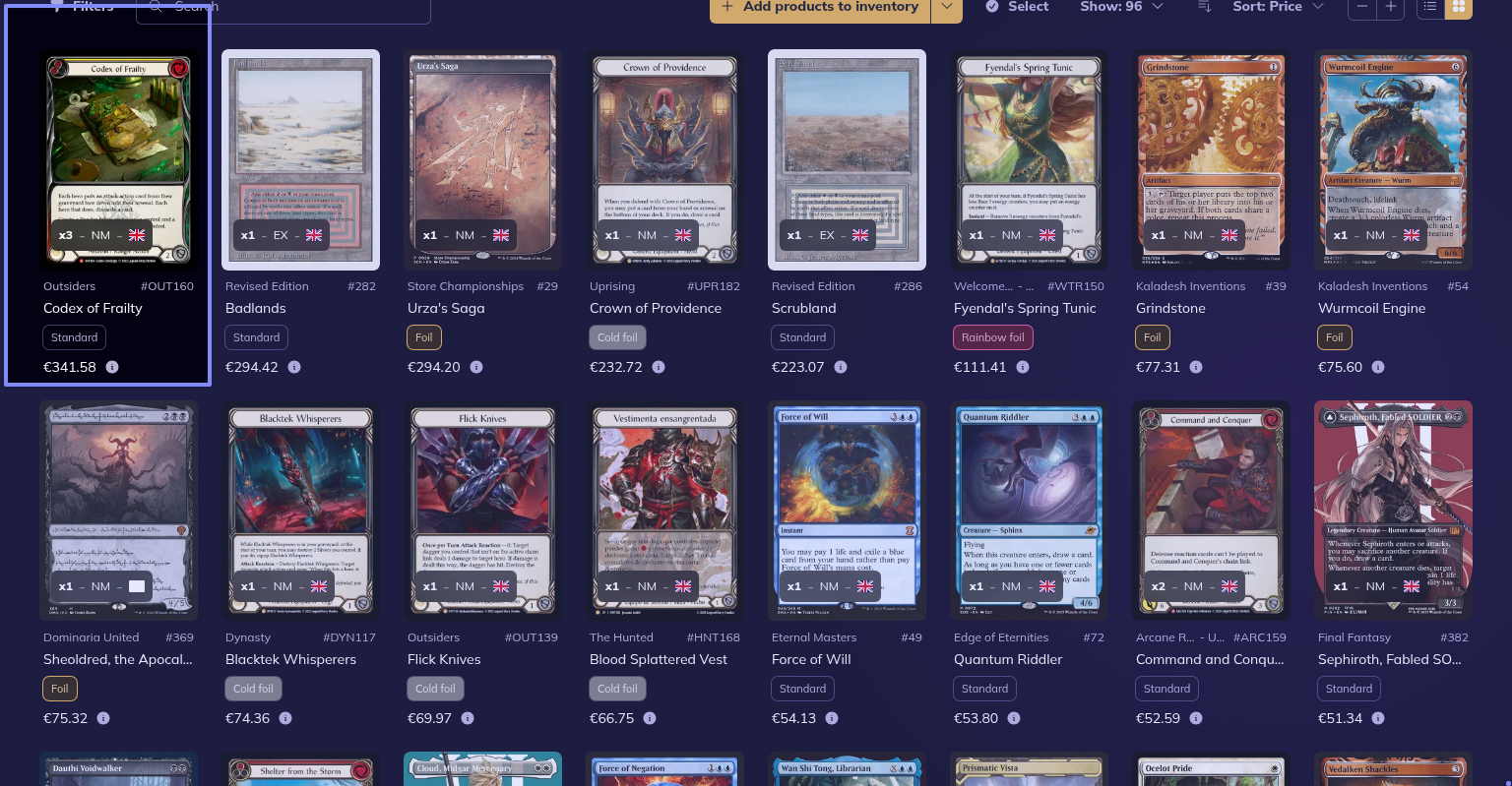 J’ai une carte qui m’affiche un prix incohérent par rapport a la côte normale de la carte.