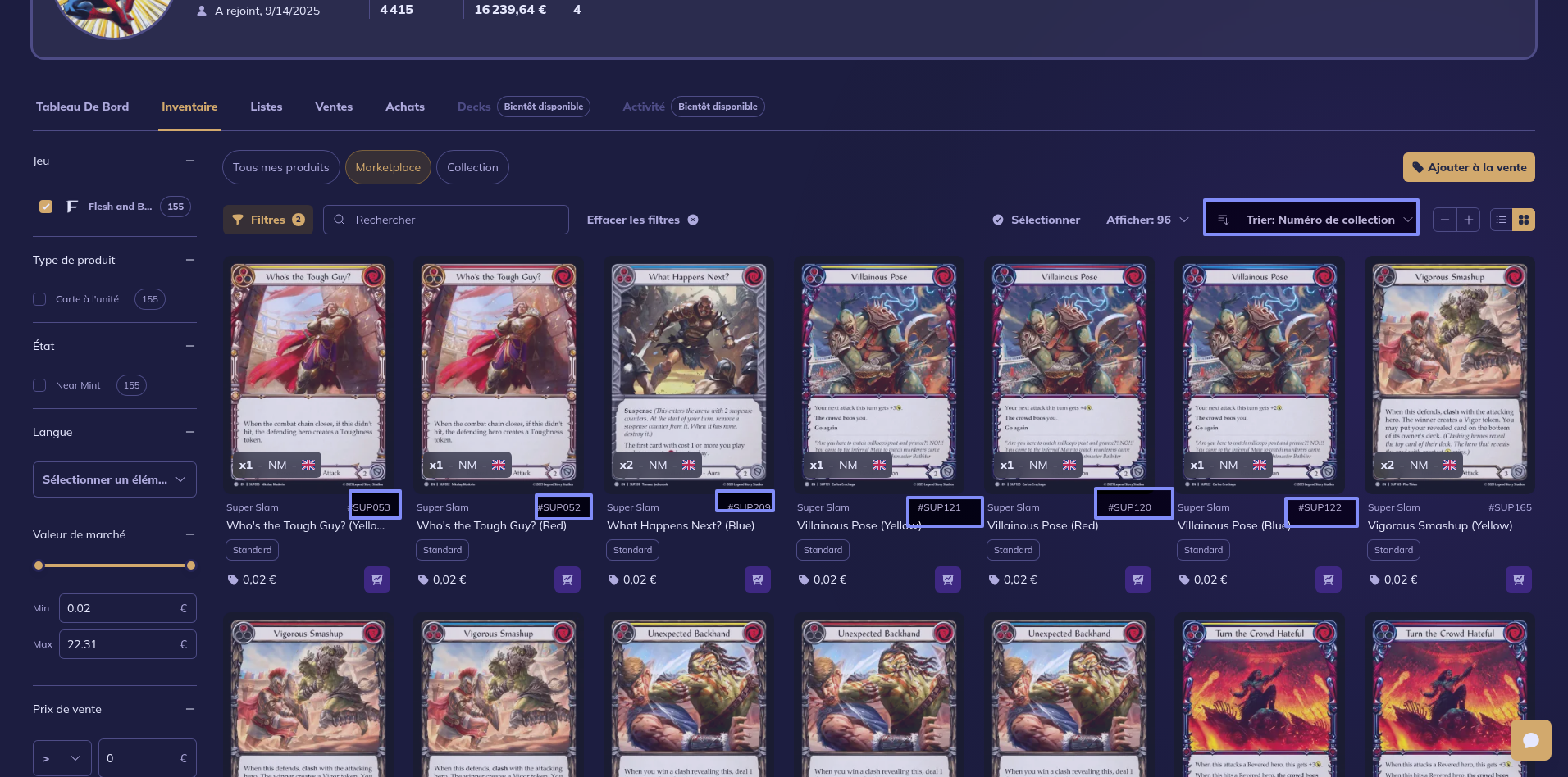 Bonjour, Je ne parviens pas à faire fonctionner le Tri par numero de collection Sur Flesh and Blood avec un Filtre sur une extension.